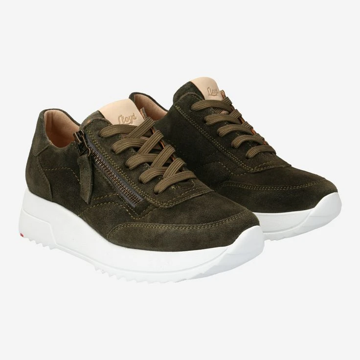 You love the sporty sneaker style – but are looking for “something special”? Then this casual shoe by LLOYD is perhaps your new favorite companion! The green suede leather is convincing with the matte shimmer of the soft texture, and is dynamically complemented by the iconic white rubber sole. A convenient zipper serves your flexibility and makes dressing a breeze!