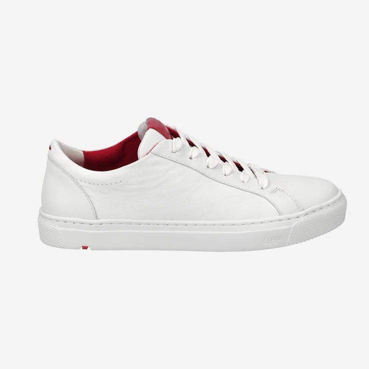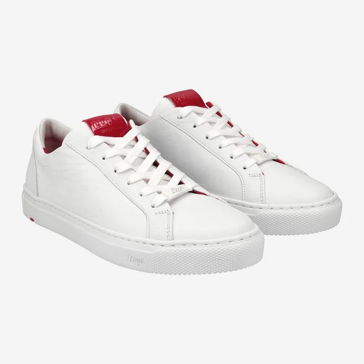 Wonderfully soft white leather caresses your feet, while a red patent detail on the shoe tongue proudly showcases: LLOYD®! A design that reminds a bit of retro sneakers, but with the classic elegance that characterizes LLOYD® shoes. Combine this shoe with either a nice everyday look or even like a more sporty style: the white look is not only chic, but like a canvas for your fashion imagination. What are you in the mood for today?